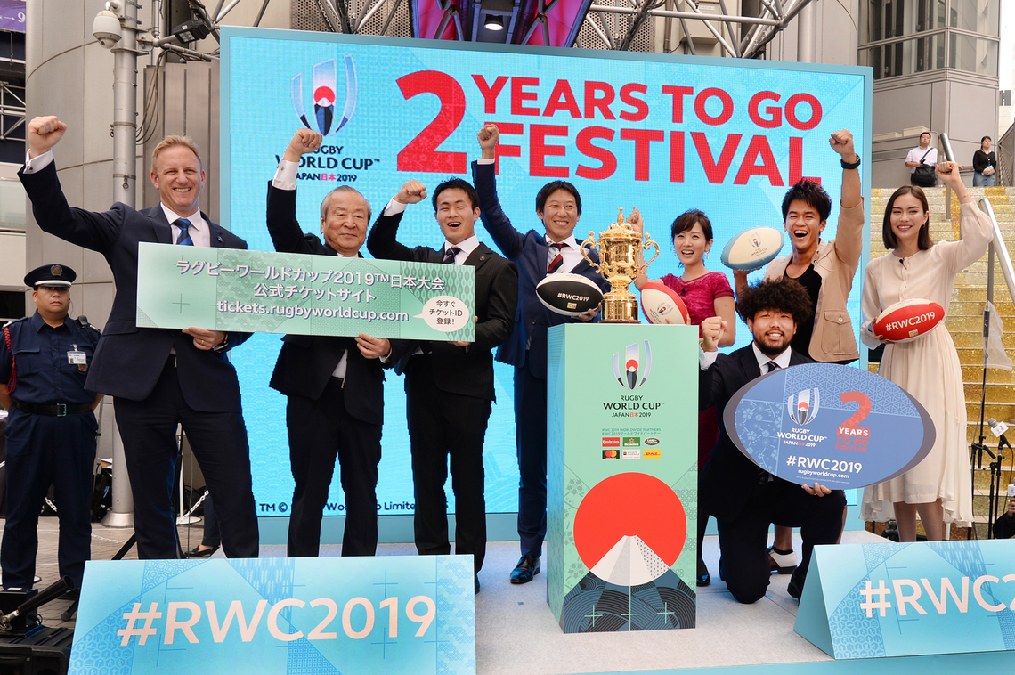 The Rugby World Cup (RWC) 2019 Organizing Committee held the "Rugby World Cup 2019 2 YEARS TO GO FESTIVAL Opening Ceremony" at the SHIBUYA109 event space in Tokyo on September 20, exactly two years before the Japan tournament.