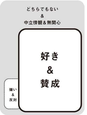 When discussing something, the conversation usually boils down to whether you're for or against it, right? What's more, what we see in the news or on social media is almost exclusively opinions for or against. As a result, we fall into the illusion that the world is split right down the middle between supporters and opponents. But in reality, the vast majority of people are either indifferent—they couldn't care less—or neutral.
