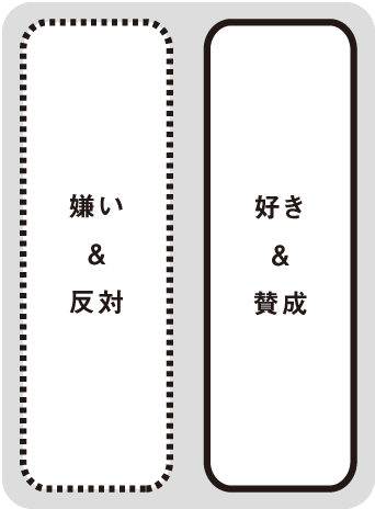 Anyway, back to the point: in your minds, the world is mostly divided into two camps, right? Agree or disagree? Like or dislike?