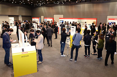 An adjacent venue featured a touch-and-try corner for new products and services, bustling with many reporters.