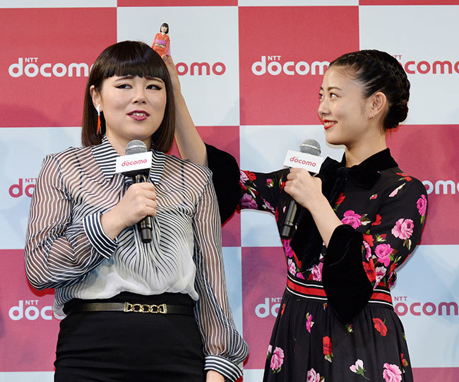 Takahata reacted to the dual-screen "M" smartphone. "It's so cool. I'm thrilled you can read it like a book, spread open," she said, her voice full of excitement. When asked, "What would you want two of?" in reference to the dual-screen feature, Ayano answered "myself," explaining that having two of him would let him tackle twice as many things simultaneously. Takahata cited "my stomach," making the audience laugh as she explained, "I hate it when there's so much delicious food but I'm too full to eat it."