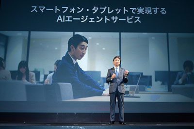 Furthermore, the "AI Agent Service," set to launch in spring 2018, drew gasps from the audience. A video showcased the service through smooth conversations between users and artificial intelligence (AI). President Yoshizawa outlined efforts to realize a service that makes appropriate suggestions at the right time for each individual, such as "proactive" alarm notifications for weather or transportation status, and purchasing代行 (purchasing on behalf) for online shopping.