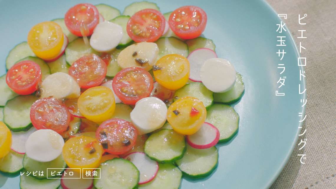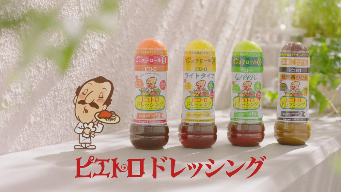 The 15-second commercial comes in three versions featuring different reactions from Sasaki. Three recipes using Pietro dressing are also introduced.