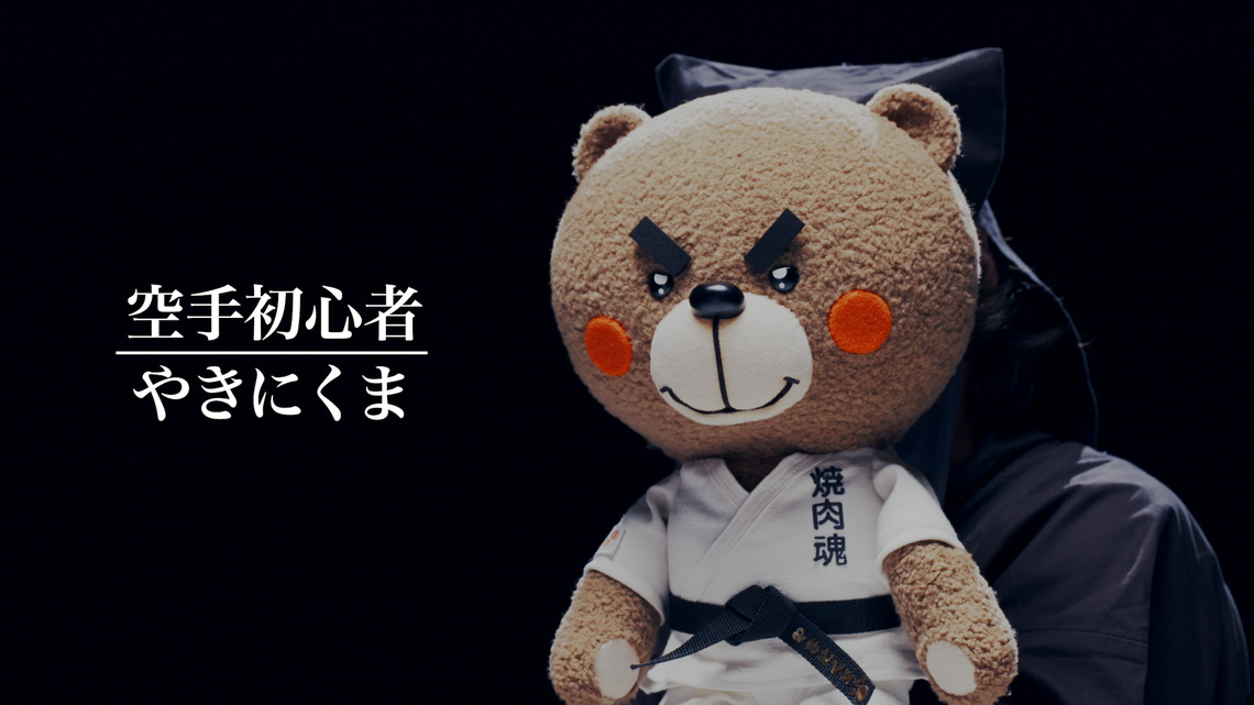 Having learned "Kata" with athlete Kiyo Shimizu in the first video, "Yakinikuma" now experiences four kumite techniques: "Upper Punch," "Middle Kick," "Upper Roundhouse Kick," and "Punch After Knocking Down the Opponent." Through Araga's sharp techniques, the video delivers a "full-body" introduction to the power of karate.