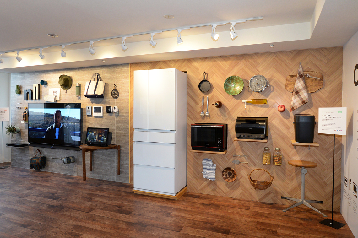 The Life Wall displays lifestyle items selected by Ms. Ishii alongside the latest home appliances for housework, health, AV, and cooking. Visitors can touch the products directly and receive explanations from staff to understand their features.