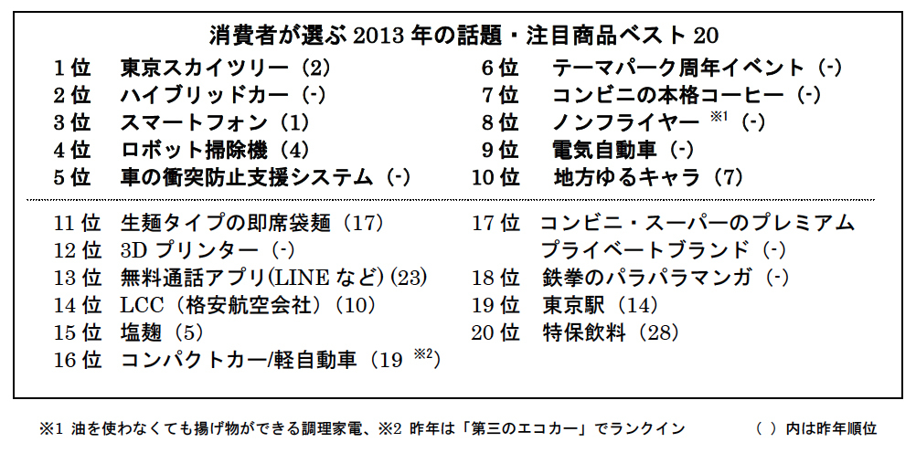 Interpreting the "Consumer-Selected 2013 Hot Topics and Noteworthy Products Ranking"