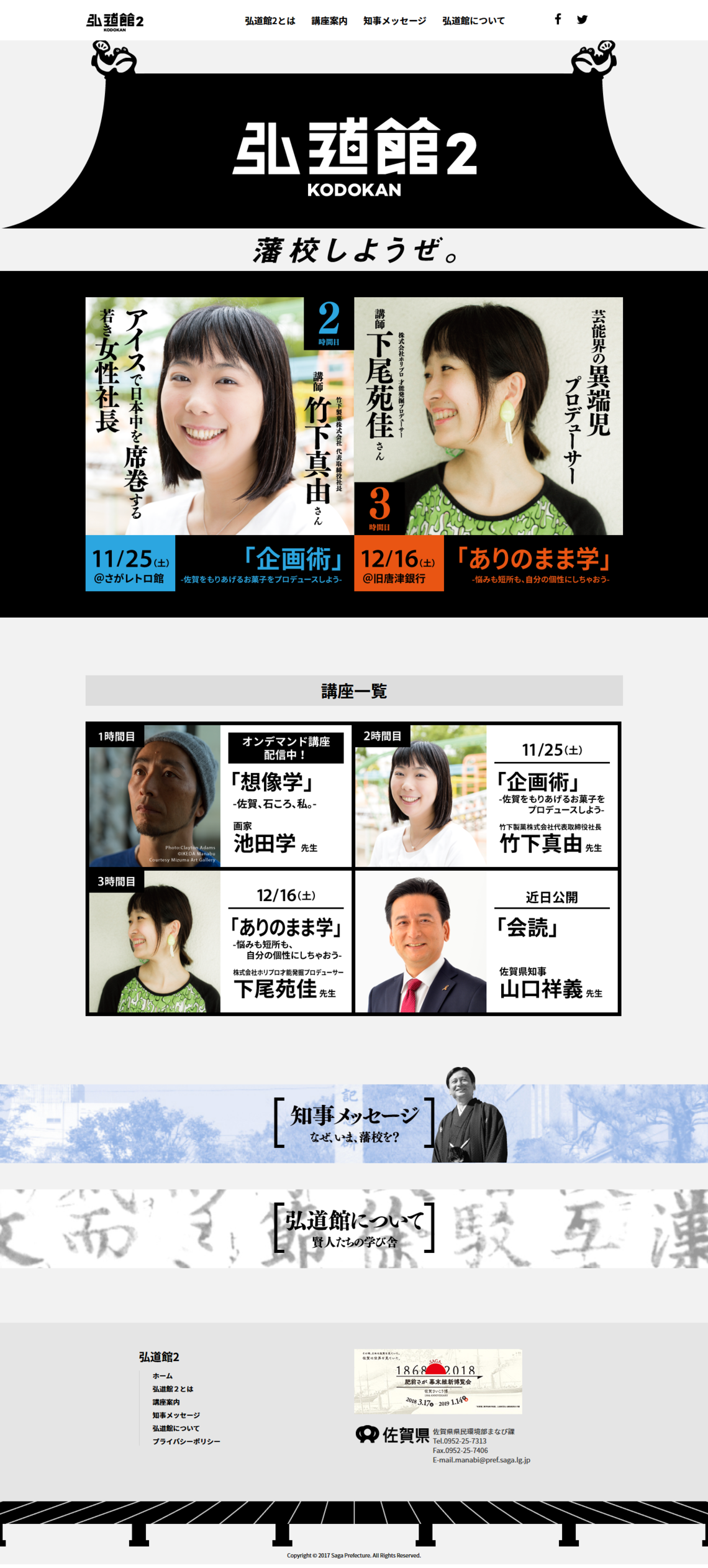 The second class period at Kodo-kan 2 features "Planning Techniques" by Mayu Takeshita, President of Takeshita Confectionery—a speech also referenced in Prime Minister Abe's address on women's empowerment. While registration for attendance is closed, it will be live-streamed on the Kodo-kan 2 website from 1:30 PM to 4:30 PM on November 25th. Please tune in.