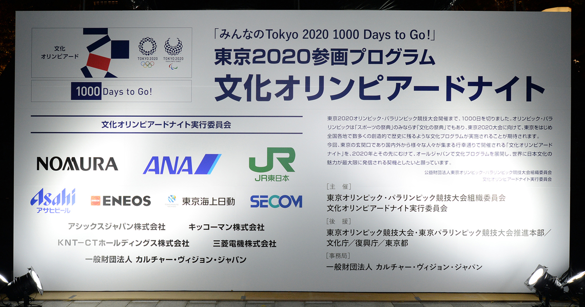 The Tokyo 2020 Organizing Committee and the Cultural Olympiad Night Executive Committee held the Tokyo 2020 Participation Program "Cultural Olympiad Night" on November 26, during the "1000 Days to GO!" month, on Gyoko-dori in front of Tokyo Station.