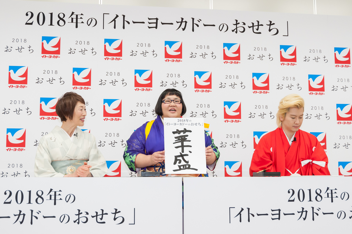 Ando-san chose "華盛" (Hana-Sei). "I had many splendid experiences and also gained some fat," he explained. Hamaichi-san then cracked a pun: "So it's both belly-full and splendid, huh?"