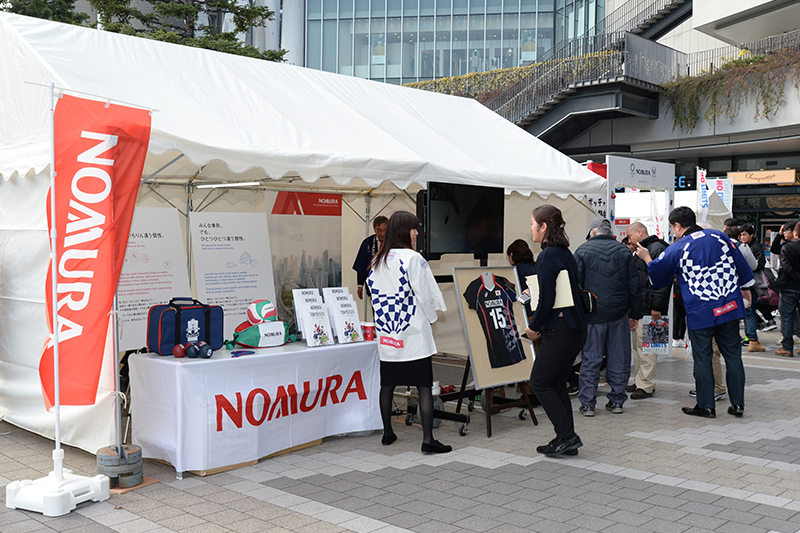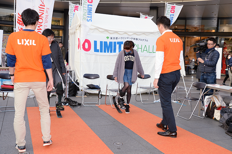 At Solamachi Plaza, Nomura Holdings, LIXIL, and Ajinomoto set up booths. Nomura Holdings introduced Paralympic sports like boccia, while LIXIL offered a sports prosthetic fitting experience corner. Ajinomoto featured a five-a-side soccer (blind soccer) experience corner and introduced its athlete support activities.