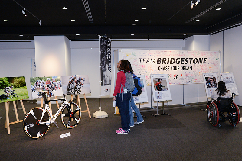 Three companies exhibited at Space 634. Bridgestone showcased its technical support initiatives for athletes through panels and videos. Panasonic and Tobu Top Tours jointly set up a booth featuring a "Boccia Entertainment Experience Corner" incorporating the latest digital technologies, including video presentations.