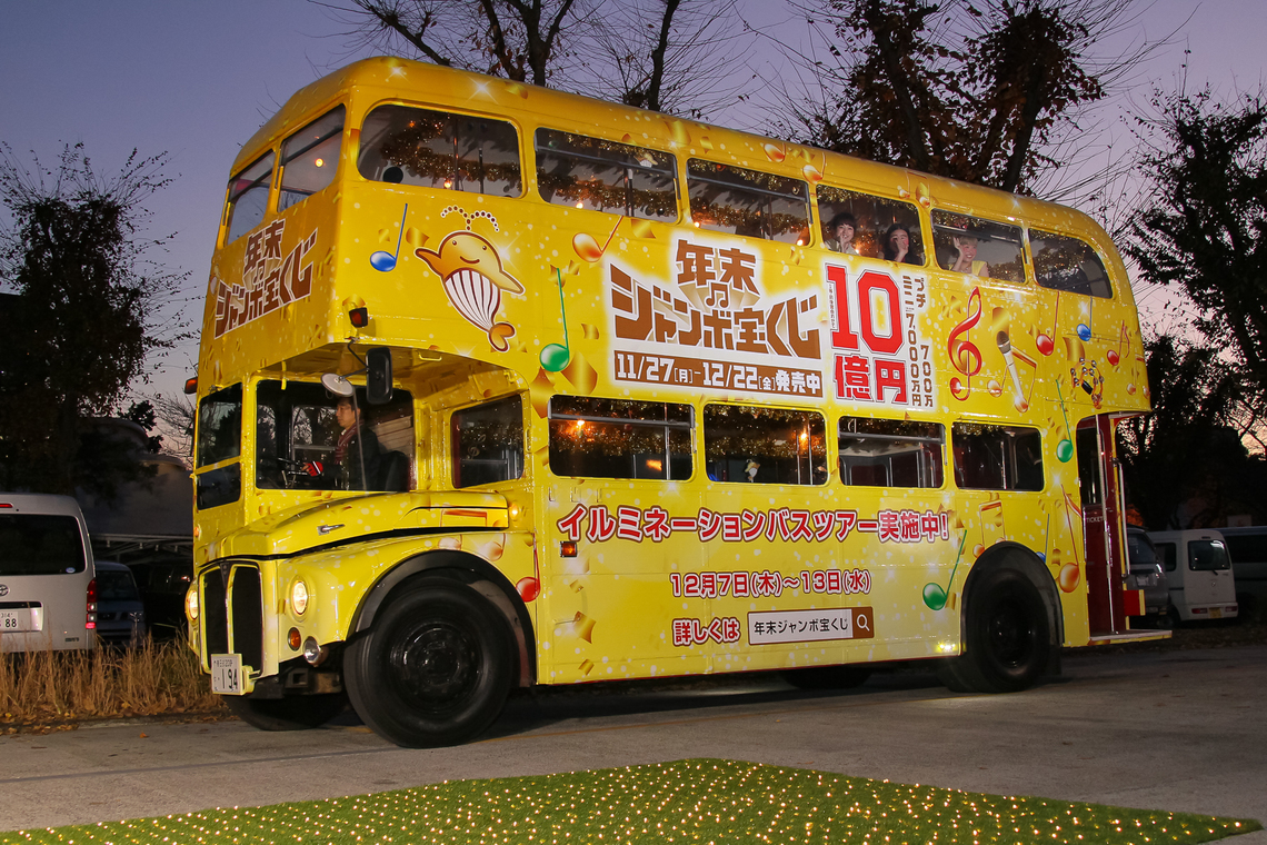 The "Year-End Jumbo Lottery Illumination Bus Tour" will run in the Roppongi area from December 7th to 9th and in the Omotesando area from December 10th to 13th.