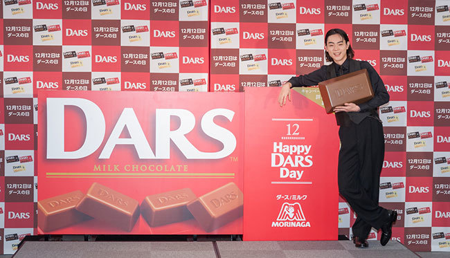 Morinaga & Co. held a "Dars Day" PR event at its headquarters building in Minato Ward, Tokyo, on the 11th, ahead of December 12th, the anniversary of its portable chocolate粒 "Dars".