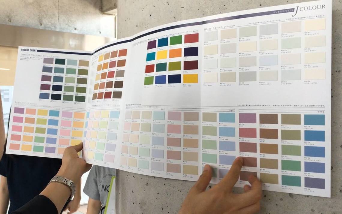 We learned that in the US, they had installed their paint in the offices of renowned organizations like NASA, Google, and Apple. Hearing there was a demo wall at their Odaiba office, I invited Mr. Akihiro Honda, the art director at our research institute, to go check it out.