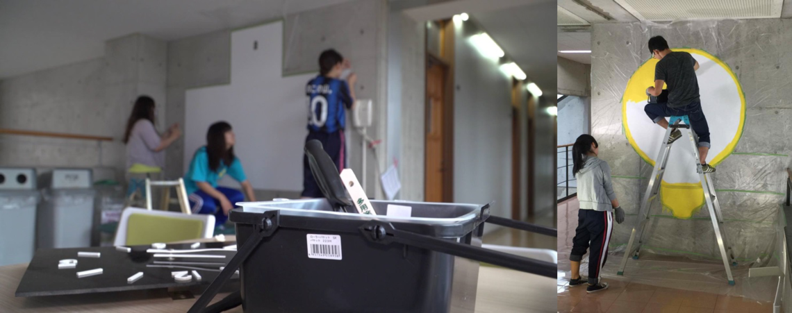 The day of the construction work, everyone gathered in work clothes. We were fully prepared to get covered in paint. The members listened intently to the thorough lecture on how to paint neatly: masking techniques, roller usage, the right amount and number of coats. One member muttered as they applied the tape and painted.