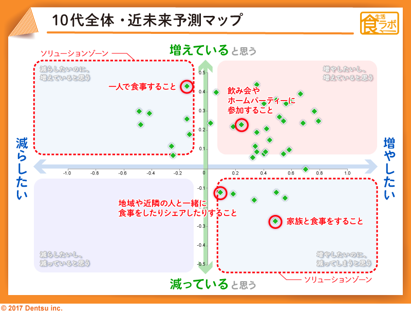 This Near-Future Prediction Map for teens revealed their desire to eat "proper meals" and "together with others." We'll also interpret this against the backdrop of the SNS culture that's part of their daily lives.