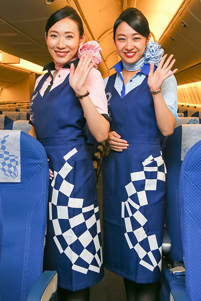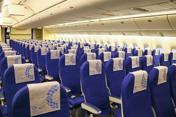 The Tokyo Olympic and Paralympic emblems will be printed on the seat headrest covers and the flight attendants' aprons.