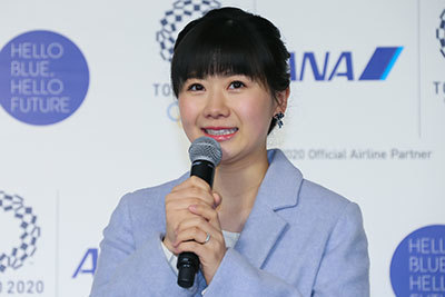 Guest table tennis player Ai Fukuhara shared her impressions upon seeing the actual aircraft: "I was surprised the design was exactly as submitted." She added, "Hosting the Olympics in your own country is a once-in-a-lifetime opportunity. I hope it will be a wonderful Games. I want to be involved in some way." She also revealed her fulfilling life as a mother: "Right now, I'm enjoying raising my child every day. I speak to her in both Japanese and Chinese."