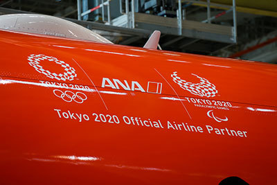 All Nippon Airways (ANA), an Official Partner of Tokyo 2020, held an unveiling event for its special-livery domestic aircraft "HELLO 2020 JET," carrying the spirit of the Tokyo Olympic and Paralympic Games, at the ANA Component Maintenance Building hangar in Ota Ward, Tokyo, on January 28.