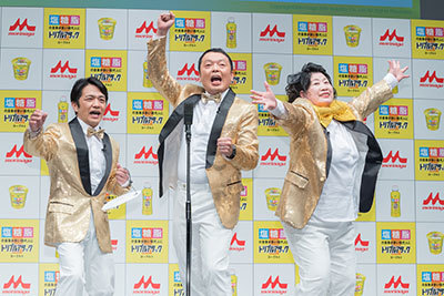 Morinaga Milk Industry held a commercial launch event for its new product, "Triple Attack Yogurt," at Spiral Hall in Minato Ward, Tokyo, on March 19.
