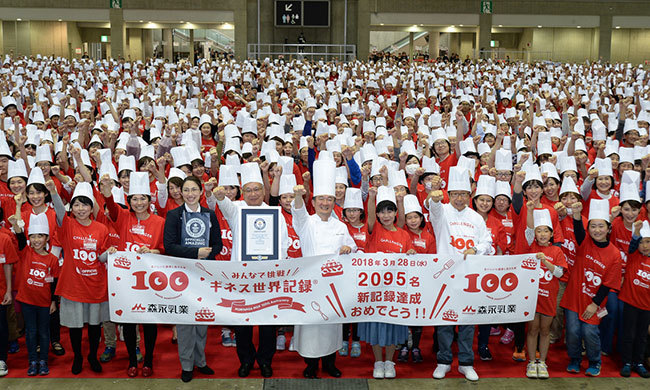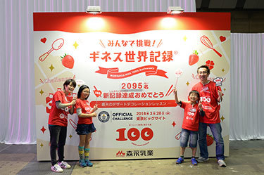 Morinaga Milk Industry held its 100th anniversary project "Let's Challenge Together! Guinness World Record" at Tokyo Big Sight in Koto Ward on March 28.