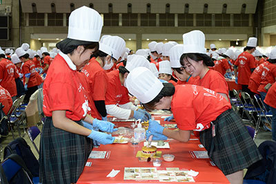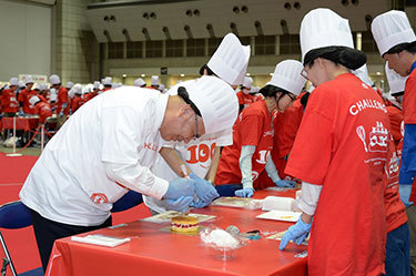 The challenge involved teams of four working together to create one cake. On stage, Chef Yokota demonstrated the cake-making process step-by-step, and the challengers followed his example to complete their decorations. After the cake-making, which included participation from President Miyahara, executives, and freelance announcer Yoshinaru Tsuji serving as MC, was successfully finished, numerous "100-Year Cherry Blossoms" were in full bloom on each table.