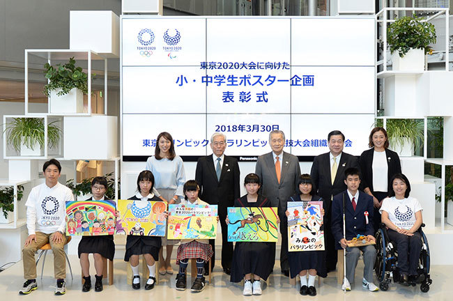 On March 30, the Tokyo 2020 Organizing Committee selected outstanding entries from submissions to its 2017 "Poster Contest for Elementary and Junior High School Students" and held an awards ceremony at the Panasonic Center Tokyo in Koto Ward.