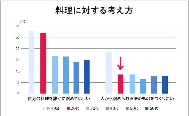 Those in their twenties want praise for themselves as cooks, for facing the reality of cooking.