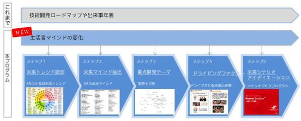 There is a growing corporate need to develop products and services while predicting the near future. However, most future predictions currently available focus on technology development roadmaps and timelines, lacking a focus on consumer mindsets—which should be the primary business concern. The "Future Scenario Creation Program" addresses this gap by focusing on shifts in consumer sentiment to envision business futures. It then uses the backcasting method (strategy planning based on a target future vision) to construct themes for business and product development.