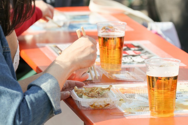 Representatives from the 16 participating shops then took turns greeting the crowd, and a countdown was held just before the 3 PM start. At the signal, all shops began selling gyoza. Visitors made their way around to their desired shops, buying gyoza and savoring every bite.