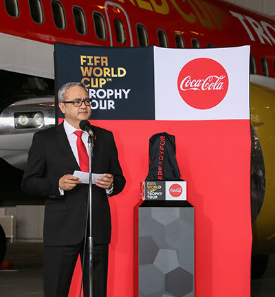 The International Federation of Association Football (FIFA) and its Official Partner Coca-Cola have been conducting the "Coca-Cola FIFA World Cup Trophy Tour," showcasing the World Cup trophy around the world.