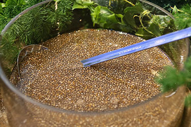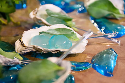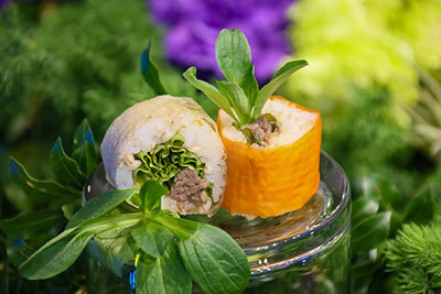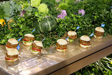 In the "Hybrid Food" area, visitors could enjoy "NOSTALGIA OYSTER LEAF," which recreates the flavor of the finest oysters without using oysters, "UNDER 100kcal BURGER," made with healthy ingredients and low in calories, "VEGHEET ROLL" made with veggie instead of nori, "Exotic Bubble Dessert" a drink made by pouring lychee-flavored tea into a test tube and mixing in chia seeds, and "Marvelous Drink" a champagne flute with an eye-catching blue and green gradient. These hybrid foods, made with innovative combinations of ingredients, delighted the eyes and taste buds of participants.