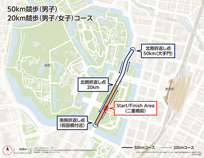 The race walking course will be in the Imperial Palace Outer Gardens, designed to allow spectator cheers to reach the athletes.