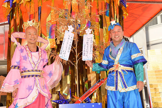 On the first day of the event, comedians Eiji Kotoge and Mizuki Nishimura of the duo BIKINGU appeared in custom-made Orihime and Hikoboshi costumes, inspired by Tanabata. They revealed wishes written on tanzaku strips. Kotoge announced a self-deprecating wish: "Please don't let my scalp get any smoother," adding with apparent earnestness, "Sometimes people tell me, 'You're going bald again!'" Meanwhile, Nishimura wrote, "I want to be able to speak smoothly without stumbling."