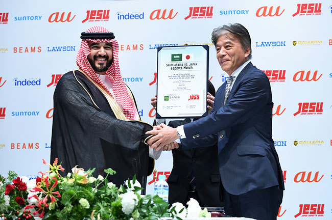 The Japan e-Sports Union (JeSU), which aims to promote and popularize "e-sports" in Japan, held a signing ceremony and press conference on August 17 at Dentsu Inc. Hall in Minato Ward, Tokyo, for the international "Japan-Saudi Arabia e-Sports Match" scheduled for January 2019.