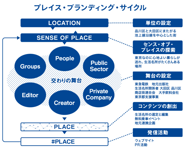 By defining the "railway line" as the place unit and conducting multi-layered research, we successfully encapsulated the place's value in the phrase "lifestyle destination." We then created diverse content by engaging stakeholders including the railway company, the administrations of two wards, local businesses, and editors.