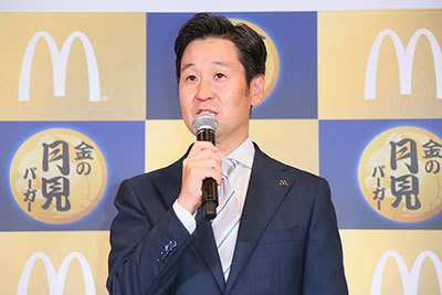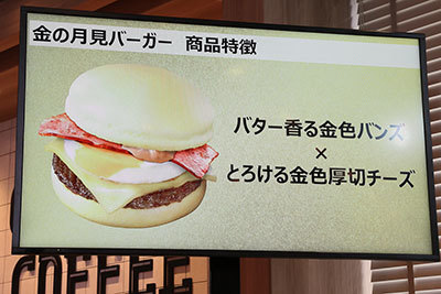 Executive Officer Takeshi Komuro of the Marketing Department stated, "This year, we've prepared three confident creations," introducing the "Golden Tsukimi Burger" featuring a bun with a rich aroma from fermented butter and thick-cut melted cheese, along with the "Tsukimi Burger" and "Cheese Tsukimi," which underwent their first renewal last year after 26 years of sales. He further announced the new release of the carbonated drink "McFizz/McFlot Kyoho Grape," adding, "We hope you enjoy these drinks together to further celebrate the arrival of autumn."