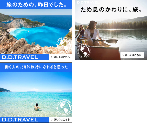 One moment it showed off the art of packing sizzle into four characters like "Cost-effective travel.", and the next, with copy like "Yesterday was for travel.", it captured the refreshing feeling of taking a break from hectic daily life and suddenly heading overseas.