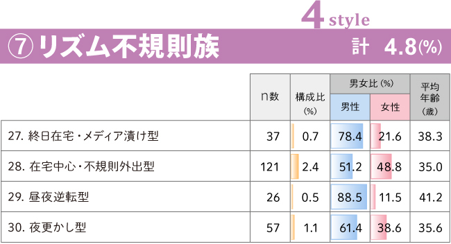 We've introduced seven distinct media lifestyle groups over three installments. Finally, let's examine the characteristics of "⑦ Irregular Rhythm Group."