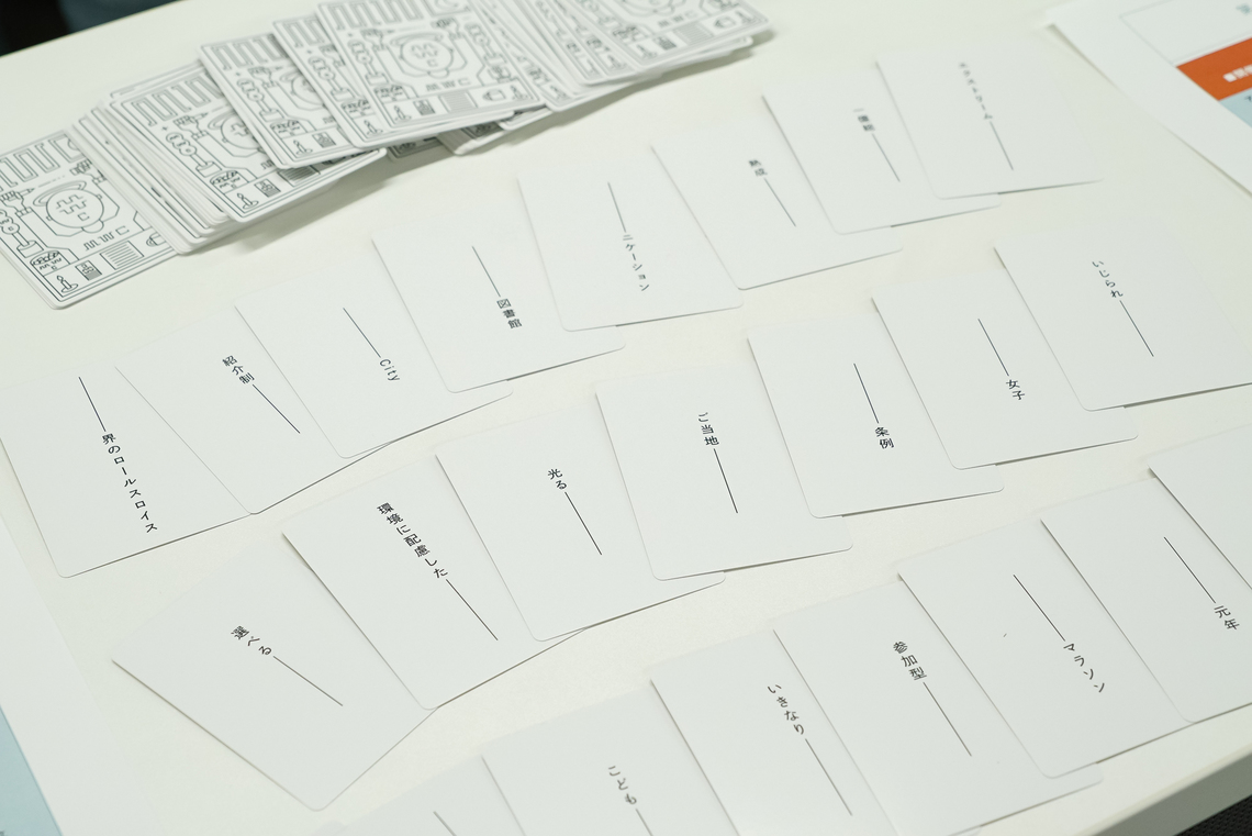 "Word Painting," as the name suggests, is "painting a motif using words." Participants were instructed to first "draw what they see" using motifs like bananas or apples placed at the center of each group's table, expressing them solely through text.