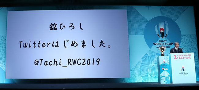 Tachi, who played rugby for three years in high school, said, "As a fan, I'm overjoyed that the tournament is being held in Japan. My rugby experience had a huge impact on my life. I want to share this wonderful sport with as many people as possible." He revealed he would try Twitter ( @Tachi_RWC2019 ) for the first time, adding, "I'm a bit nervous, but I'll do my best to tweet and convey its appeal!"