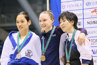 Mei Ichinose also set new tournament records in the 200-meter individual medley and 100-meter backstroke, and a new Japanese record in the 100-meter freestyle.
