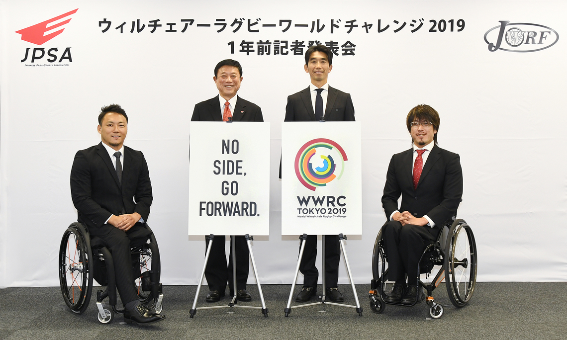 The Japan Sports Association for the Disabled (JPSA) and the Japan Wheelchair Rugby Federation (JWRF) held a press conference on October 15 at the JPSA headquarters in Chuo Ward, Tokyo, regarding the international wheelchair rugby tournament "Wheelchair Rugby World Challenge 2019" (Supported by: Tokyo Metropolitan Government, Shibuya Ward; Top Partner: Mitsubishi Corporation; Official Partners: Japan Airlines, Mitsui Fudosan; Official Supplier: Goldwin).