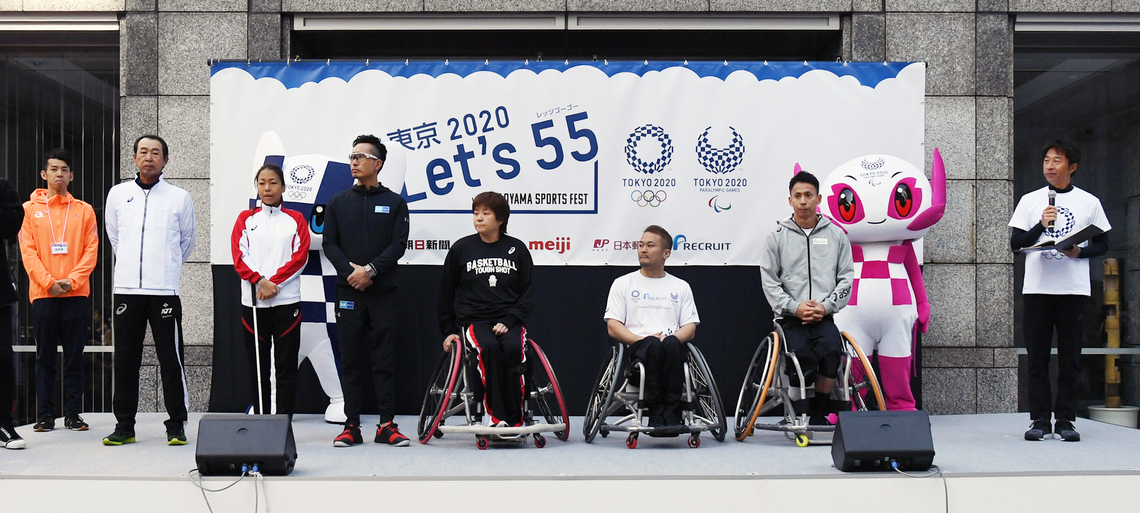 On October 21, the Tokyo 2020 Organizing Committee held the event "Tokyo 2020 Let's 55 ~Let's Go Go~ with Aoyama Sports Festival" (Co-hosted by the Aoyama Sports Festival 2018 Executive Committee [Asahi Shimbun, Dai-Nichi Co., Ltd.]; Supported by Meiji, Japan Post, Recruit, and others) at the United Nations University in Shibuya Ward, Tokyo.