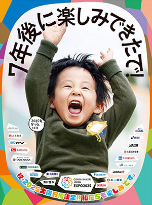 Following the decision to host the 2025 International Exposition (Expo) in Osaka, 19 companies from the bid partners (ASICS, Art Corporation, Osaka Shinkin Bank, Okumura Corporation, Kirin, Jetstar Japan, Sumitomo Electric Industries, Daikin Industries, Daicel Corporation, Daihatsu Motor Co., Ltd., Daihen Corporation, Takenaka Corporation, Mitsubishi Tanabe Pharma Corporation, Nomura Securities Co., Ltd., Maruichi Steel Tube Co., Ltd., Sumitomo Mitsui Banking Corporation, Rengo Co., Ltd., Yoshimoto Kogyo Co., Ltd., Dentsu Inc.) placed a newspaper advertisement announcing the decision.