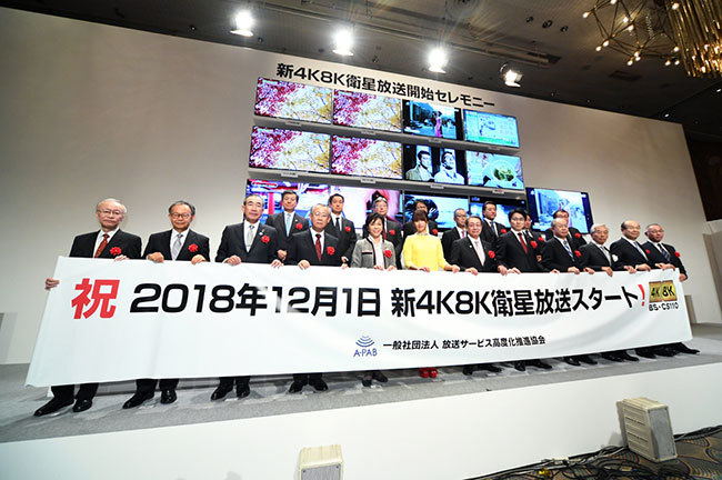 The Advanced Programmes Association of Broadcasting (A-PAB) held a ceremony at Hotel New Otani in Chiyoda Ward, Tokyo, on December 1st, inviting approximately 600 stakeholders to mark the launch of the new 4K8K satellite broadcast service.