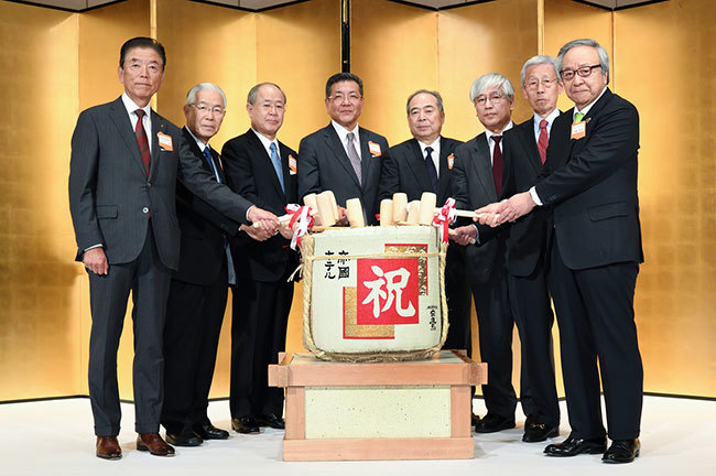First, eight representatives from the co-hosting organizations, including Chairman Akira Ohira of the All Japan Advertising Federation, took the stage and performed the traditional sake barrel opening ceremony.