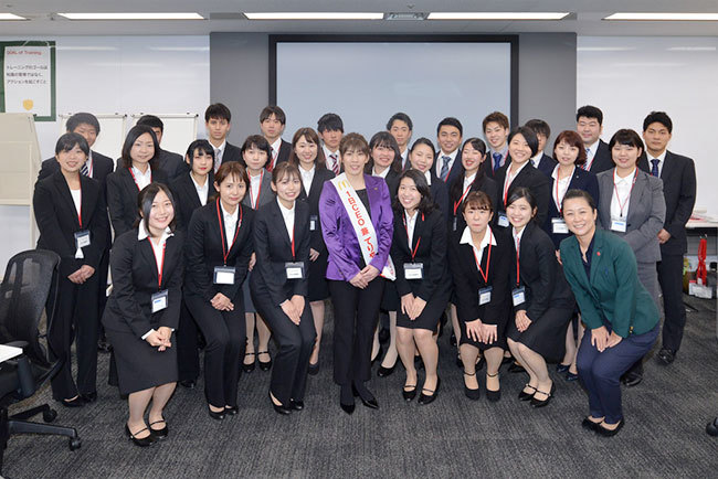 Later, Ms. Yoshida visited the headquarters in Shinjuku Ward. She toured the offices, signing payment documents, participating in meetings to offer advice, and even surprising trainees with a surprise greeting. She truly "did it all" as CEO for the day.