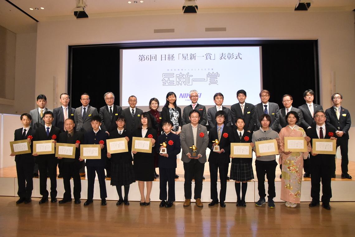 The award ceremony for the 6th Nikkei "Shinichi Hoshi Award" (Sponsored by Nikkei Inc., Co-sponsored by JBCC Holdings, Tokyo Electron, Amada Holdings, NSK Ltd., Asahi Kasei Homes, and ThreeBond) was held on March 2 at the The National Art Center, Tokyo in Minato Ward, Tokyo.