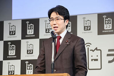 Toru Kunishige, Parliamentary Vice-Minister of Internal Affairs and Communications, read a message from Minister Masatoshi Ishida: "Radio is a familiar means of obtaining information in daily life and plays a valuable role in gathering essential information during disasters. Radisma is a highly convenient service offering benefits from both communication lines and broadcasting, such as one-touch switching between them. We hope it will become widely adopted."